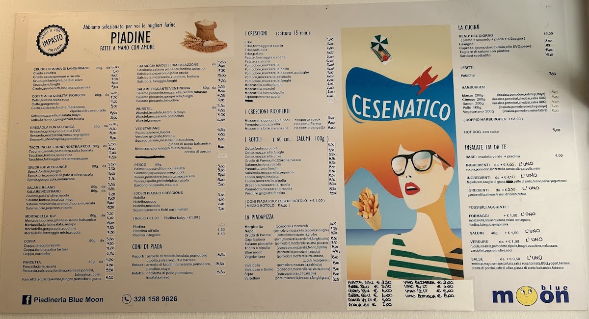 Piadineria Blue Moon is a gem nestled in the heart of Cesenatico, Italy, offering a delightful journey into traditional Roman culinary culture. Visitors can revel in the authentic piadina, a beloved flatbread, renowned for its superb texture and flavor. The real star, however, is the exquisite prosciutto crudo, praised for its richness and quality. Customers have raved about the inviting, tranquil atmosphere and the warm hospitality of the staff, enhancing the overall dining experience.